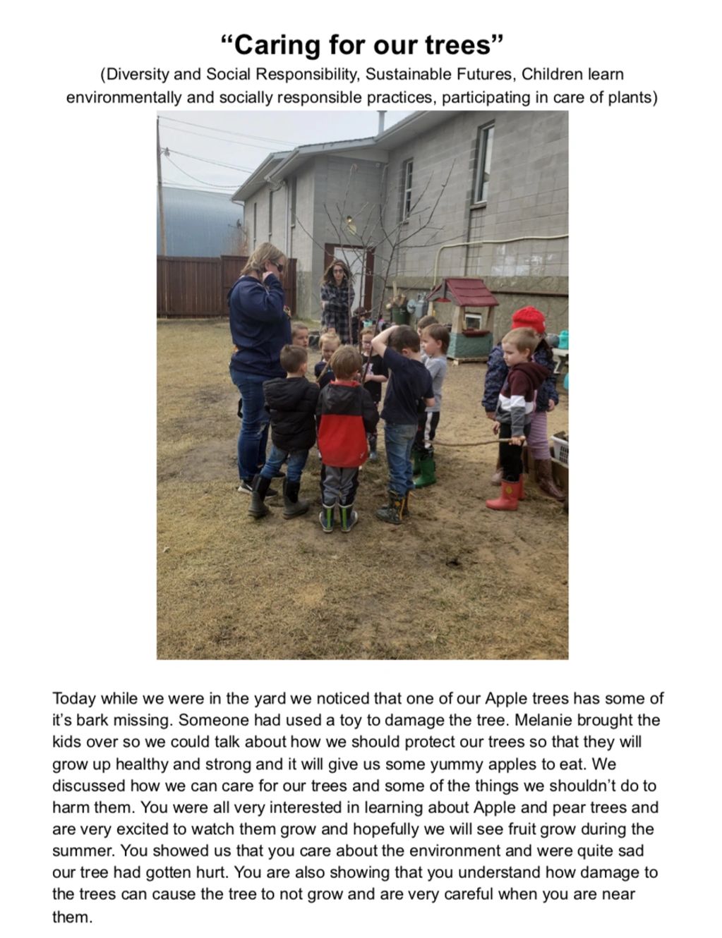 OUR private play yard is another classroom where we learn and grow. SO MUCH development happens in this yard. There is always an opportunity to explore and learn and well..... sometimes just get dirty diggin holes! ONE day these trees will have apples that we hope these kids will come and share with us as teenagers and adults and tell us who they have become!